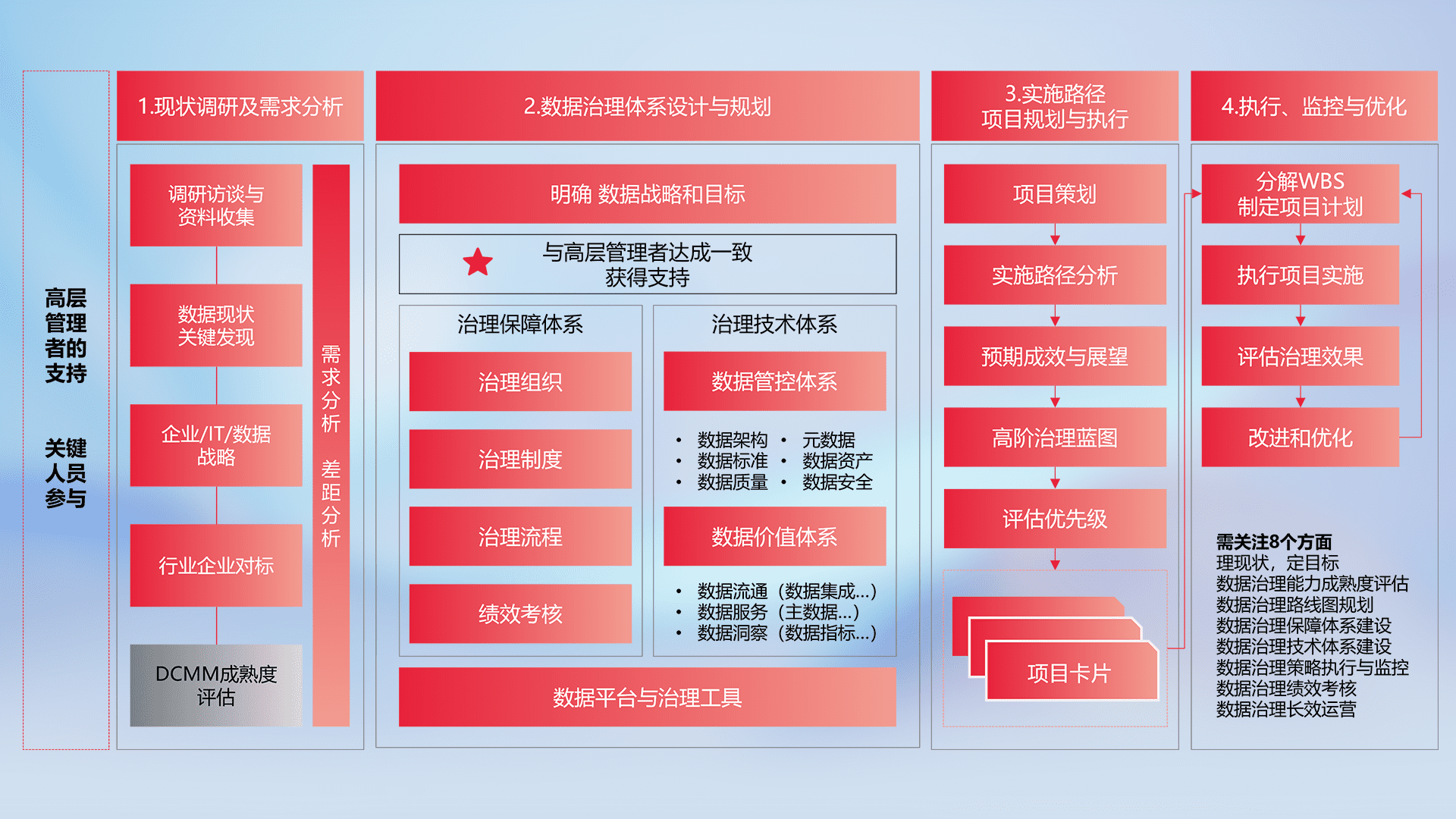 制定并执行统一的数据标准,,规范数据定义和格式,,,消除冗余和不一致性,,,,实现跨部门和跨系统的数据一致性,,为企业提供标准化的数据基础。。。
